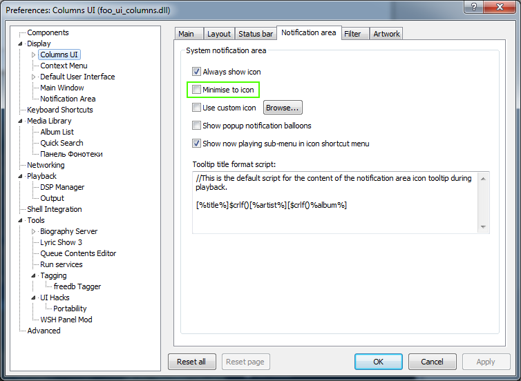 Подскажите , есть-ли способ сворачивать плеер в панель задач, а не в трей (при наведении курсора - видеть инф. ) ?