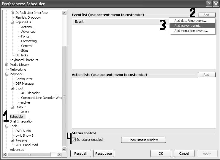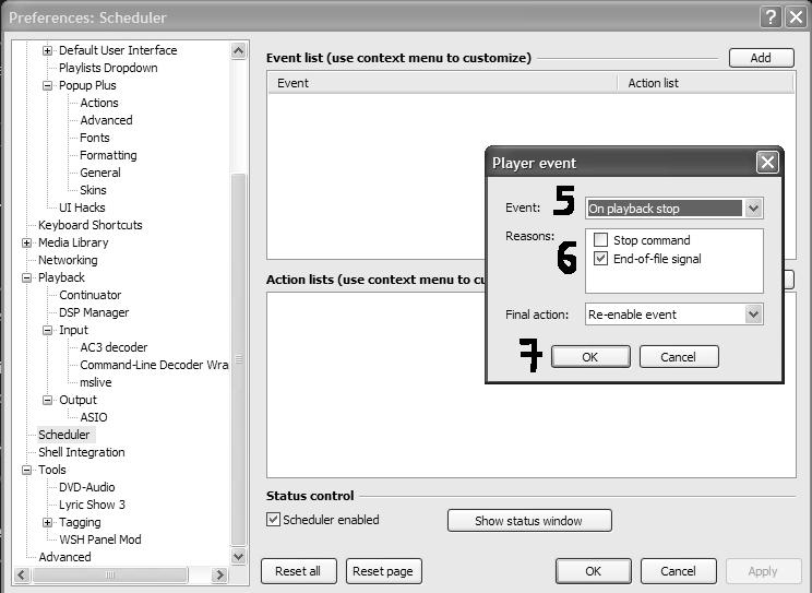 Нажимаем на название On playback stop/ End-of-file signal (re-enable event)