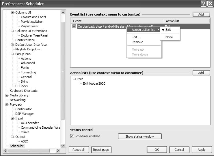 Нажимаем на название Exit ПКМ - открывается меню - выбираем Exit foobar2000.