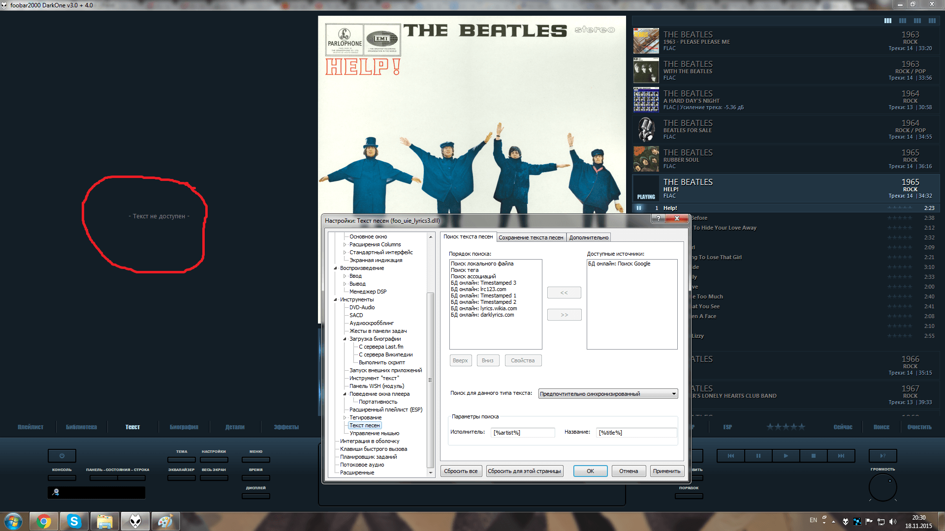 В настройках плагина лирики 9 серверов, сохранённой при этом нигде нет, ни в папке с музыкой и в фубаре.