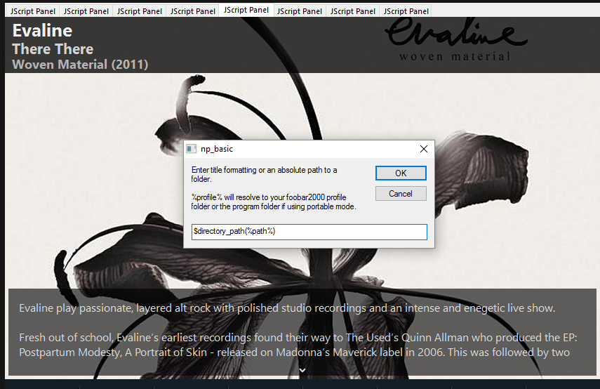 Во-первых он скачивает нормальные фотографии, а во-вторых показывают нормальную биографию. Вот только я без понятия как заставить эту панель читать фотки из music/pics/%artist%.jpg