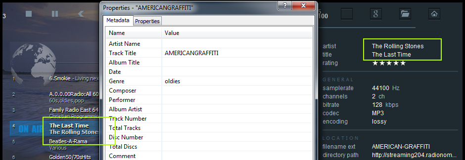 kgena_ua, понял. Но тогда вырисовывается другая проблемка: я использую metadb=fb.GetSelection() всегда. Следовательно при воспроизведение и наличии в плейлисте более 1 позиции радио, ItemInfo показан только для играющего потока, на выбор остальных потоков не реагирует.