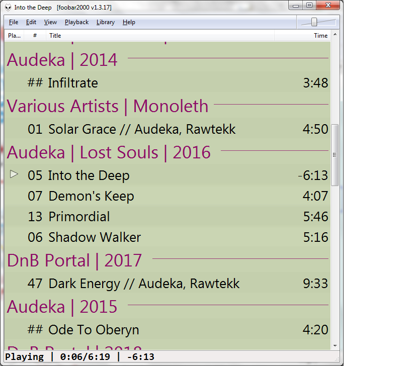 Не все, но многие уже знают - нечто, извлекающее нули и единички из носителя информации и превращающее их звуки любимых мелодий (разумеется не без помощи различных радиодеталек) и известное как "программный плеер", работает по одному и тому же сценарию, алгоритму, коду (нужное подчеркнуть), как бы оно там не называлось: foobar2000, Winamp, Аимп, 1by1 и тд и тп. То есть - все плееры в этом смысле одинаковы. Но вот в смысле того как это выглядит, как обставлено визуально, а точнее, как и в какой мере пользователь может повлиять на процесс визуализации извлечения музыки из информации - тут нет равных фубару и уж конечно в варианте с CUI.