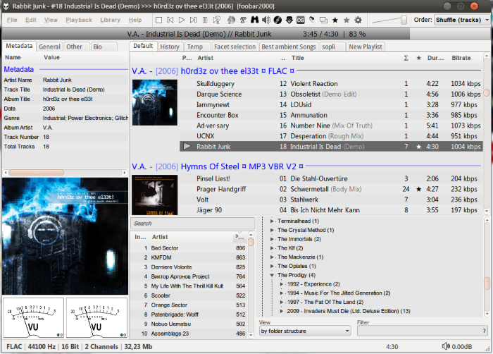 foobar beta 1,4 DUI собран на новой js panel 2 и скриптах входящих в комплект с панелью + library tree + waveform minibar