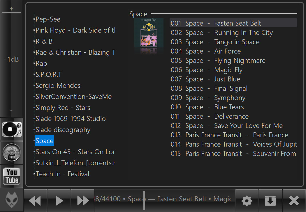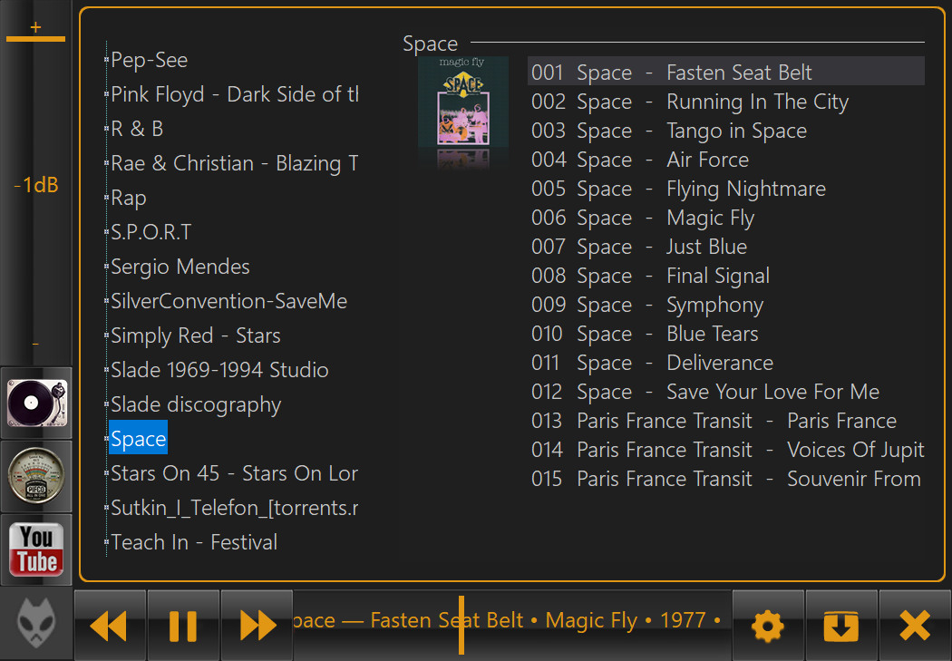 Не хватает панели плейлист менеджера или кнопки вызова панели. Панель albumart не отображает встроенные в файл картинки. С полно экранным режимом полная путаница, нажал на vu meter он развернулся в полный экран, нажал на полный экран он переключился на черный скин но не в полном экране, нажал возврат он развернул исходный скин но в полном экране,