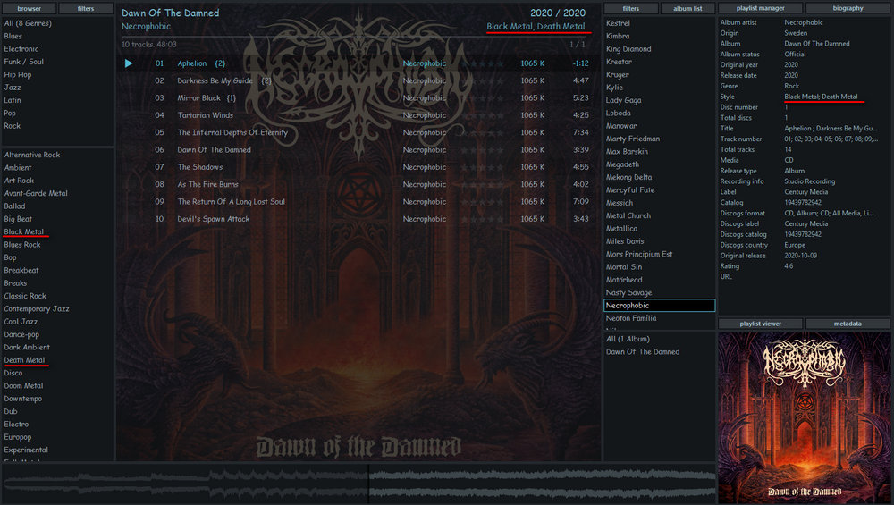 Если в метаданных теги жанра перечислены через ";" то будет как у меня на скрине в первой колонке, каждый жанр отдельно. Eсли в метаданных теги жанра перечислены через запятую то и в панели фильтров они будут отображаться через запятую.
