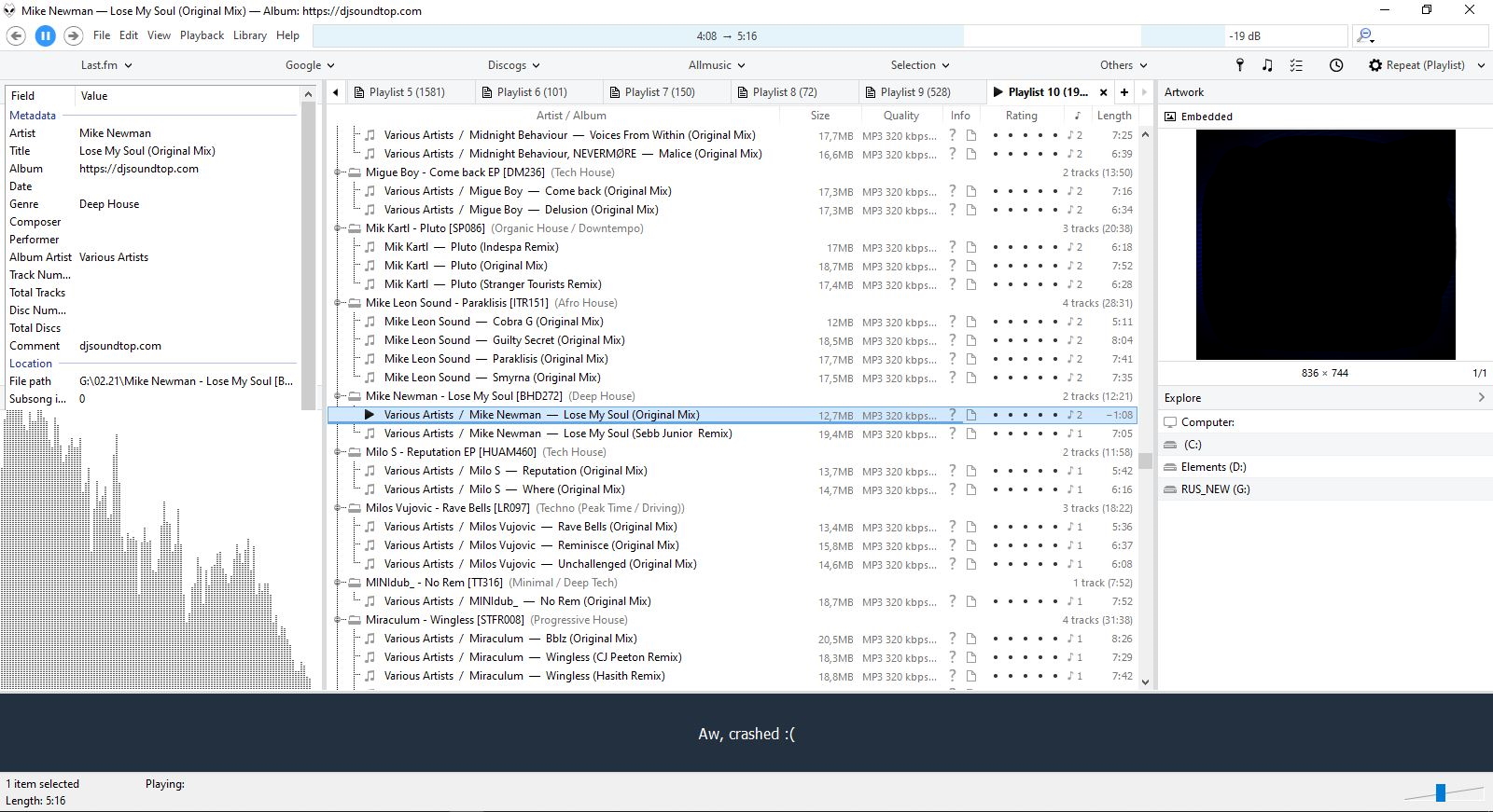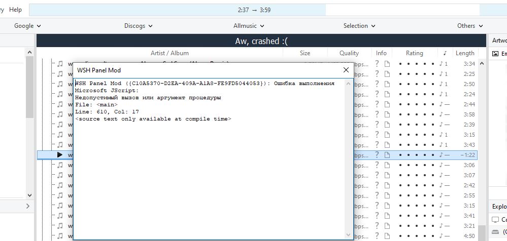 Подскажите как исправить данную проблему? раньше при перезапуске плеера это окошко восстанавливалось, теперь уже постоянная ошибка.