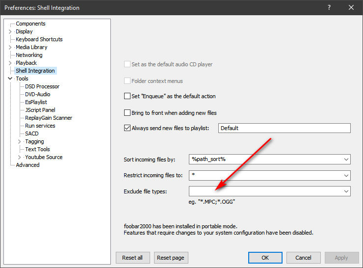 А как вы добавляете файлы в плейлист? Перетаскиваете (drag and drop) каталог с музыкальными файлами из проводника винды в плейлист фубара?softvip:Так и стоит, но вроде мне кажется нужно исключить .ape, чтобы тот не появлялся?