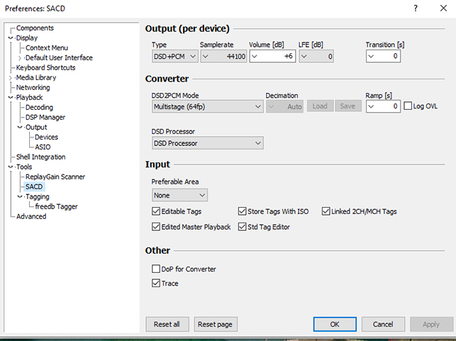 Что в настройках File->Preferences->Tools->SACD в Output в Type? Не выставлено ли DSD вместо PCM?