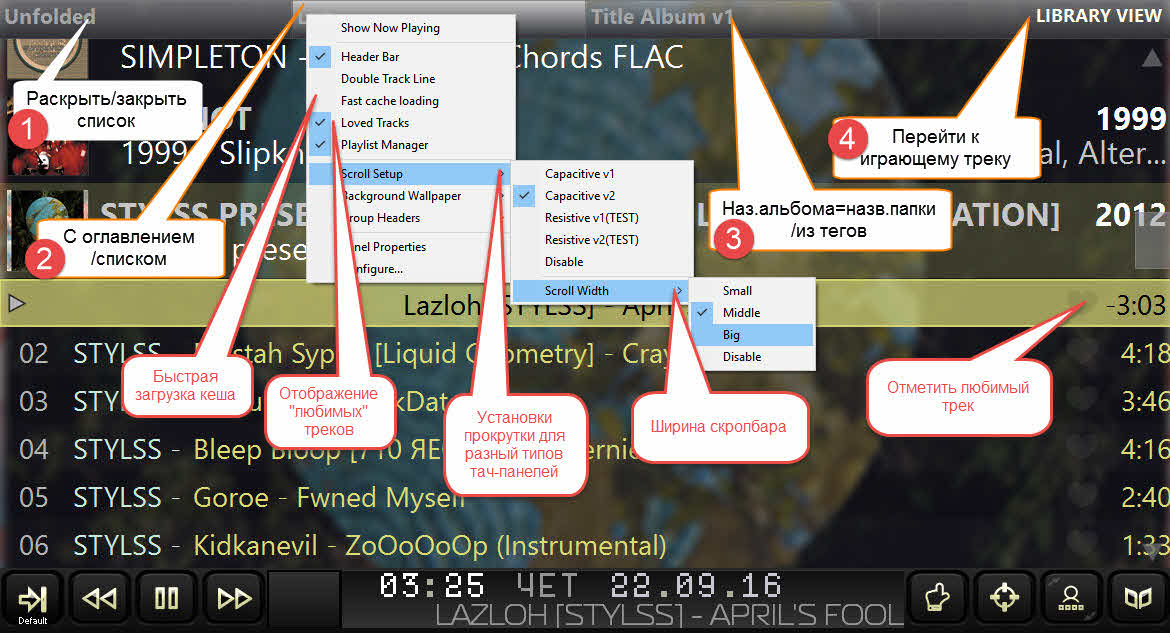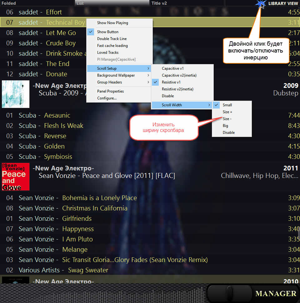 Ещё изменения (надеюсь последние :smile: 6000 строк это "перебор" :insane: ) по плейлисту br3tt с "плавной прокруткой ЛКМ" и сортировкой папками ,