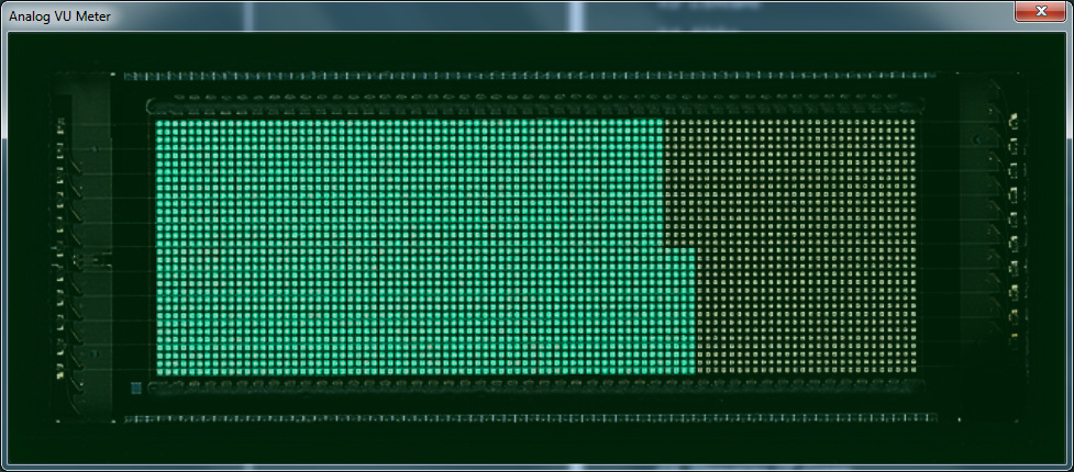 Сделан из интереса к проверке возможностей компонента... В результате, в начале шкалы движется как скоростемер локомотива. Нижний предел составляет примерно -54,5 дБ (похоже на предел 16-битного сигнала) при шкале в -60 дБ. Если пофиг, можно применить как длинный и красивый «градусник». 900*100 пикс.