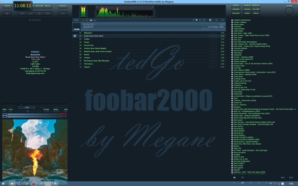 Модифицированная тема foobar2000 DarkOne 3.0.1 автора tedGo. В скриптах сохранены все авторские подписи.