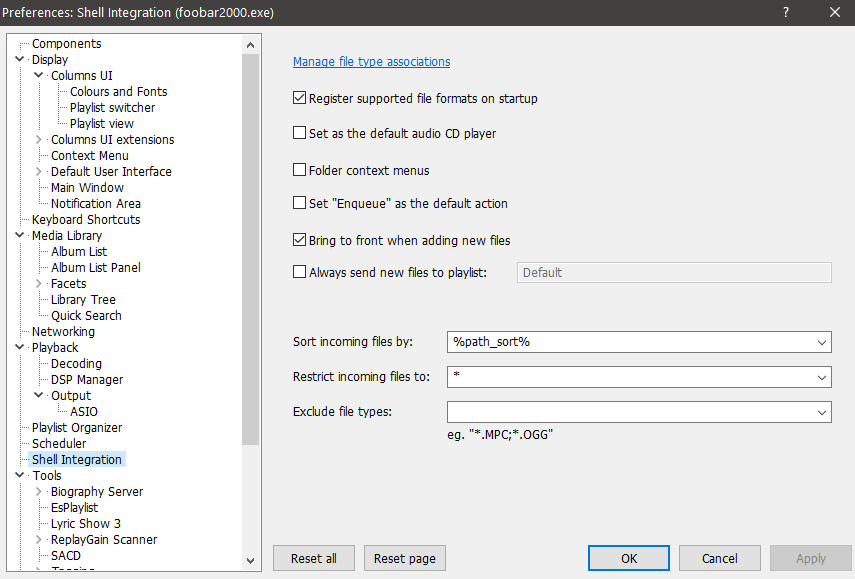 При стандартной установке foobar2000 по путям отличным от Program Files и с использованием в сборке All users & Portable, сборка устанавливается для всех пользователей. Все пользовательские настройки хранятся в корневой папке foobar2000, но при этом есть фозможность ассоциаций файлов и контекстного меню в проводнике Windows.