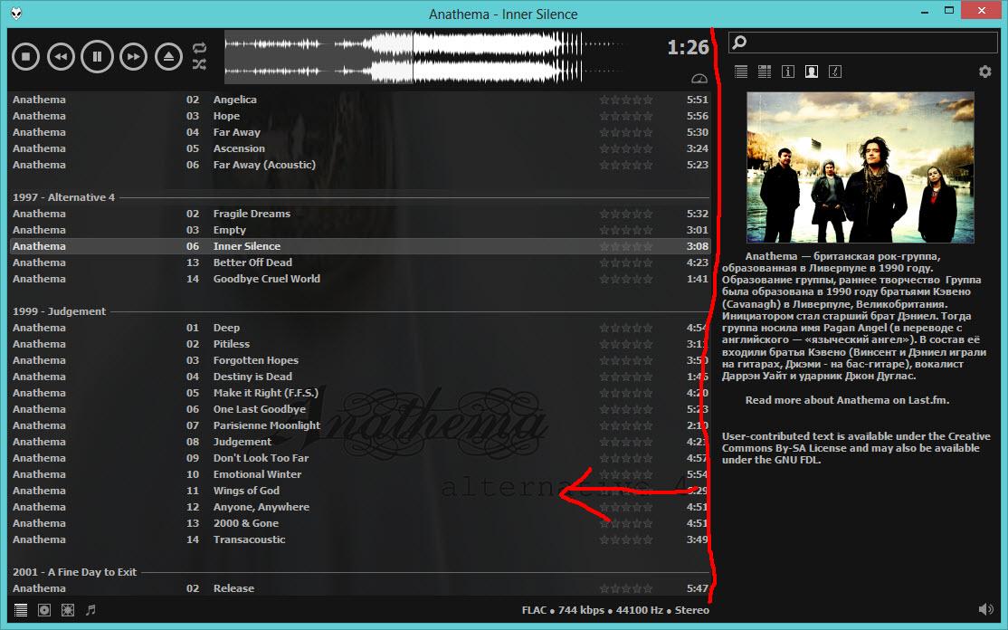 "Как изменить ширину колонки с плейлистом (списком фонотеки/библиотеки/информации о треке, авторе) в ущерб окну с воспроизведением?"