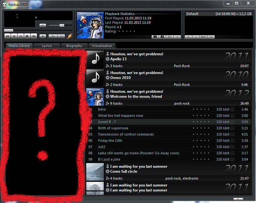 vladj, спасибо, но я наверно не совсем внятно обьяснил проблему. Тени, цвет и шрифты мне фиолетово. Хочу, чтобы отображение плейлиста было, как Leo x7 подсказал, но теперь не могу найти, как добавлять и убирать вкладки, например название альбома чтобы было а артист и название композиции были раздельно. Уже раз пять сносил фубар :smile: после экспериментов как то всё вобще в негодность приходит.