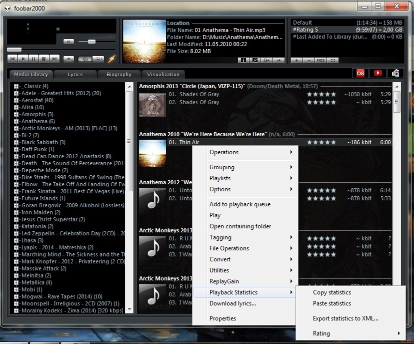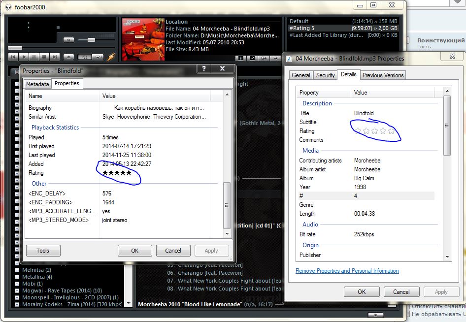 Пр.кл. по треку - Playback statistics - Write statistics to file tags.