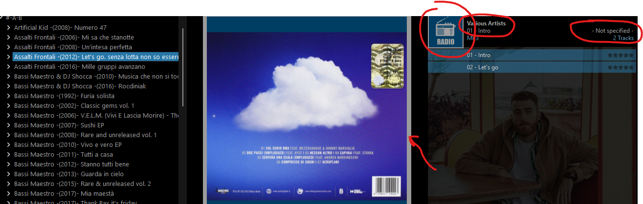 1) I'd like to know if it is normal that in view1, if I just click on one album without running play, it doesn't recognize cover, artist etc. and it gives me a generic Radio image, various artists in place of the real artist, and it writes genre not specified. It finally recognizes all of them if I run play only.