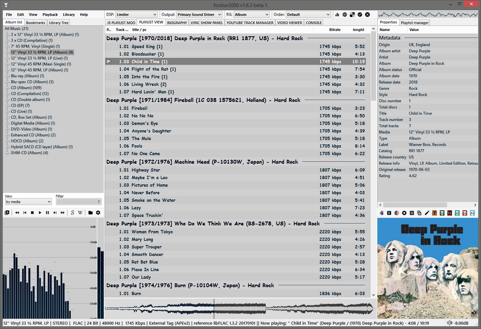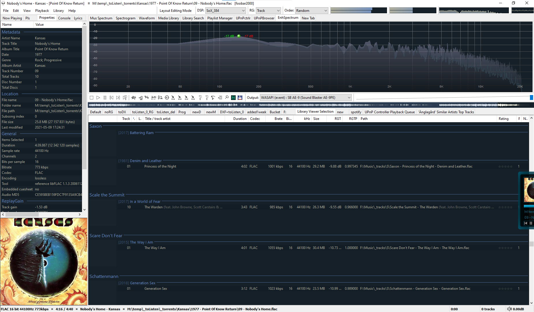 В Качестве плейлиста SimPlaylist - лучший, по моему мнению, плейлист менеджер, только один минус -- нельзя убрать автоподгонку под ширину экрана/панели (хочу прокручиваемый по горизонтали плейлист (чтобы справа поставить путь до файла, он иногда очень длинный).