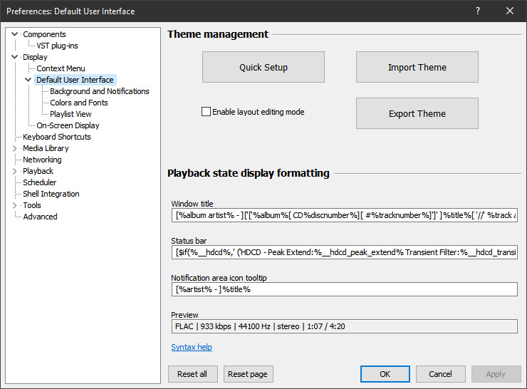 Попытался сделать максимально функциональный и приятно выглядящий для себя интерфейс. С Колонками (Columns UI) заморачиваться не сильно хотелось, там слишком много программирования, а мне тупо лень (хоть и могу).