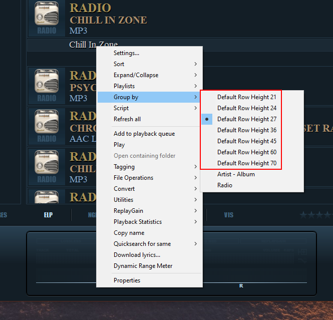 Данную функцию можно активировать из контекстного меню по щелчку ПКМ(правая кнопка мыши) на панели(Cover Panel). Пункт меню: "Radio Logos: ON/OFF". Выбор в контекстном меню доступен в режиме "Стоп" или при воспроизведении интернет радио. В папке foobar2000 автоматически создаст папку Radio Logos, если она ещё не создана. В папку можно добавлять картинки с логотипами для интернет станций. Названия картинок должны соответствовать названиям станций, служебные символы виндовс не используются. Для упрощения операции переименования своих картинок в пункт контекстного меню добавлена функция Copy filename to clipboard. Функция становится доступной в режиме воспроизведения и если включено отображение логотипов Radio Logos: ON. Функция копирует название интернет станции в буфер обмена сразу заменяя запрещённые символы допустимыми, в результате получается готовое название для переименования файла (картинки). Рекомендуется переименовывать картинки из меню свойства ПКМ по картинке. Других действий не требуется.