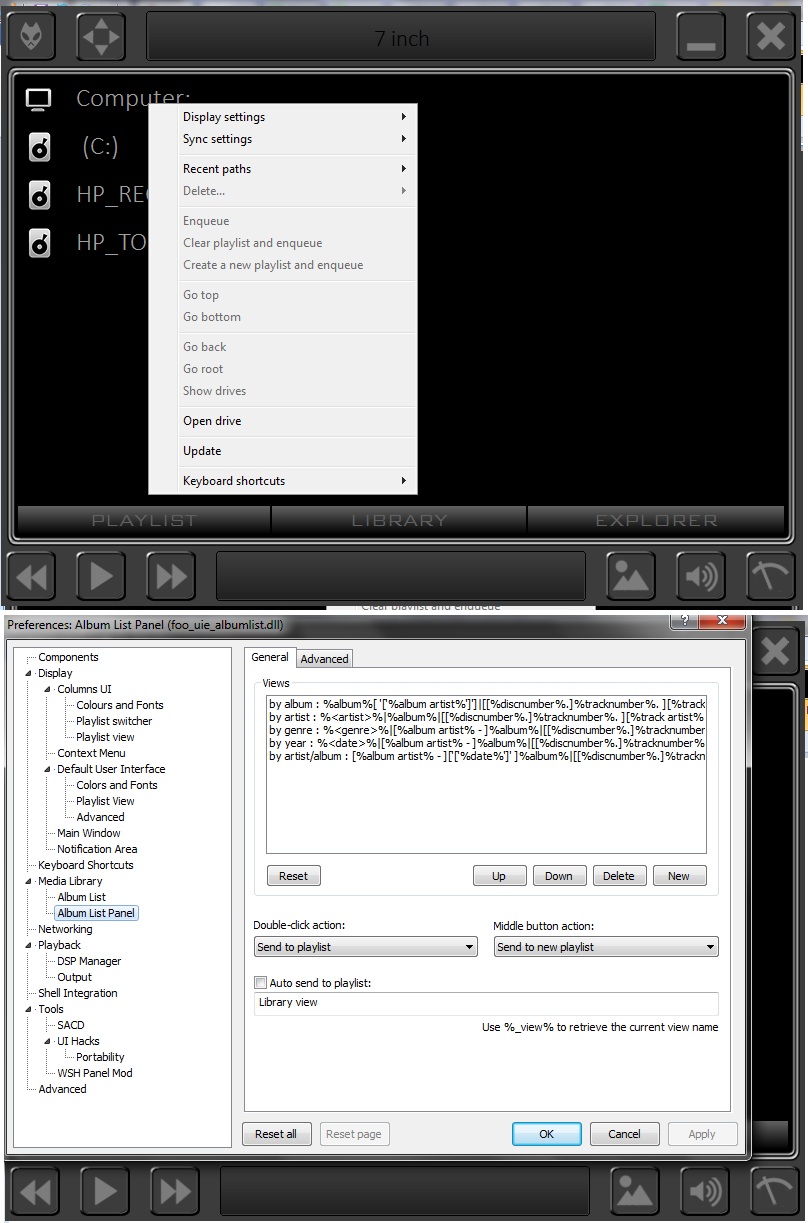 5. Не смог я в этой сборке попасть в настройку эксплорера. И потом я скорее хотел бы изменить поведение LIBRARY в плане плюсиков, а EXPLORER в плане формировании плейлиста.