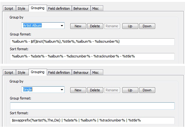 Я выбираю группировку Single, но он сортирует треки по номерам не так как прописано в тэгах песен - для меня2. Есть группировка с именем Single с "подключенным" titleformat script - Title. В этом случае, вне зависимости VA или нет, всегда в плейлист