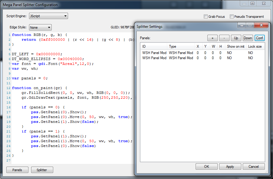 Нижняя (foo_uie_mega_panel_splitter), там скрипт отображения панелей. Тут задаются координаты и само движение.
