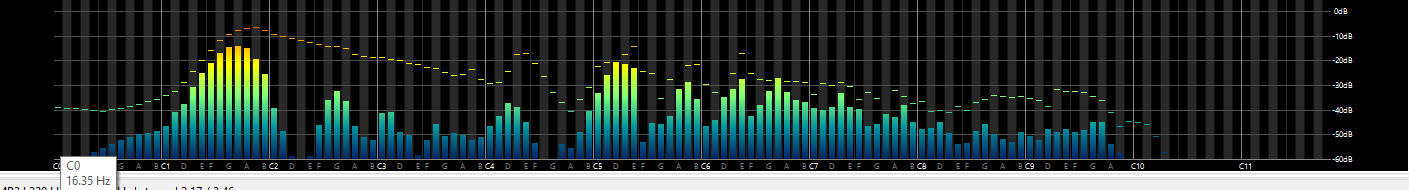 Как на твоем скрине получилось, а что значит Notes? там где буква с цифрой меняется ,на твоем скрине ты выделил , И еще вопрос , Если у меня показывает уже " благодаря тебе " от 16гц , то это же не значит что мои колонки играют от 16 гц? это же показывает воспроизводимый диапазон частот самого трека ,а не колонок?