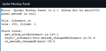 При попытке открыть CUE file (рип image + cue) через меню коммандой File/Open... вылетает (crashed) скрипт Album Art из приложенного комплекта, на jscript panel 2.2.2 такого глюка нет. Может кто нибудь проверить?