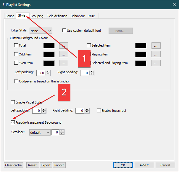 - Размер шрифта в Columns UI можно изменить (из-за несовместимости с компонентом "UI Hacks") только обходным путём, временно отключив компонент "foo_ui_hacks". Переименуйте папку компонента "foo_ui_hacks" в "_foo_ui_hacks", измените размер шрифта на нужный, затем снова измените имя папки на "foo_ui_hacks".