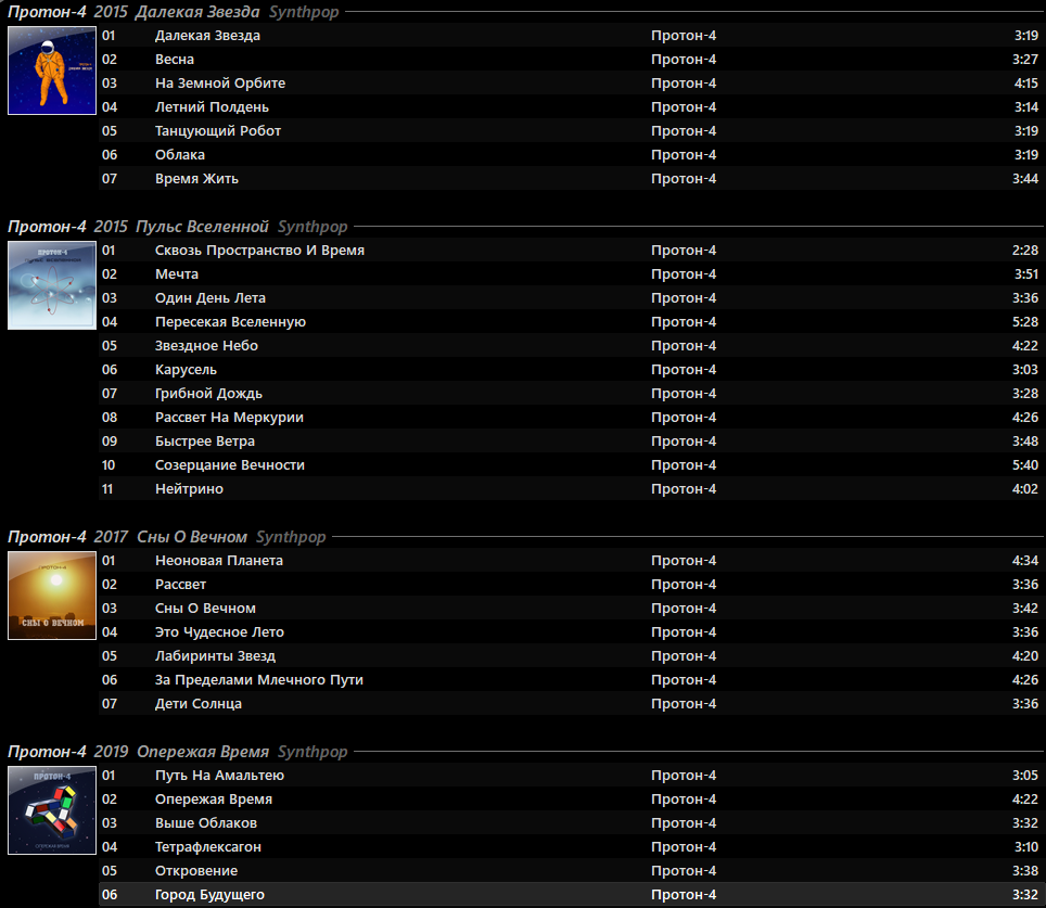 Полную дискографию можно скачать тут: Протон-4