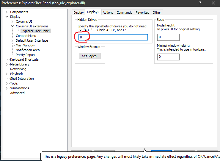 Также могут быть настройки плагина foo_uie_explorer. Честно говоря, я им не пользуюсь, может в нем есть своего рода фильтр для букв дисков.