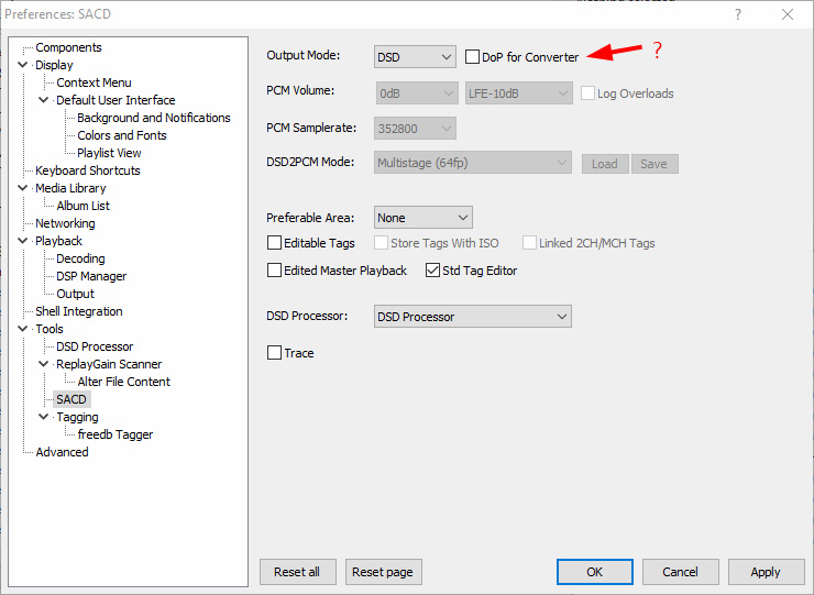 Т.е. как я понял, эта функция нужна, когда мы просто конвертируем аудио из одного формата сжатия в другой когда конвертируем что то в фубаре? Или это означает, что если флажок не стоит, то DSD будет в "родном" виде идти в плеер, а если стоит, то DSD будет идти в плеер под маской PCM? (судя по описанию DoP из статьи приложенной ранее с сайта audiophilesoft.ru).