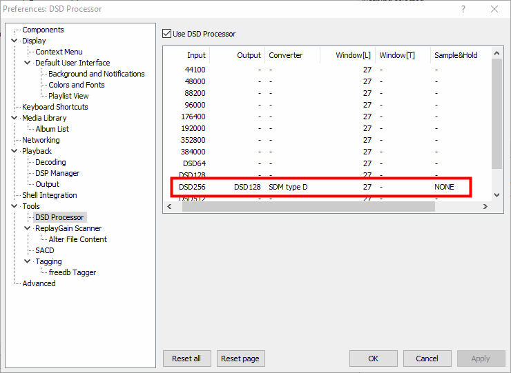 У меня остается под сомнением то, что я не могу воспроизвести DSD256 и меня беспокоит "DoP for Converter", т.к. я так и не понял его функцию и нужно ли его отметить флажком.