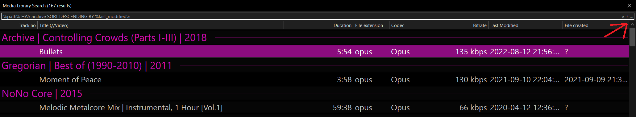 Приветствую товарищи. Имеется автоплейлист отсортированный по %last_modified% reverse.