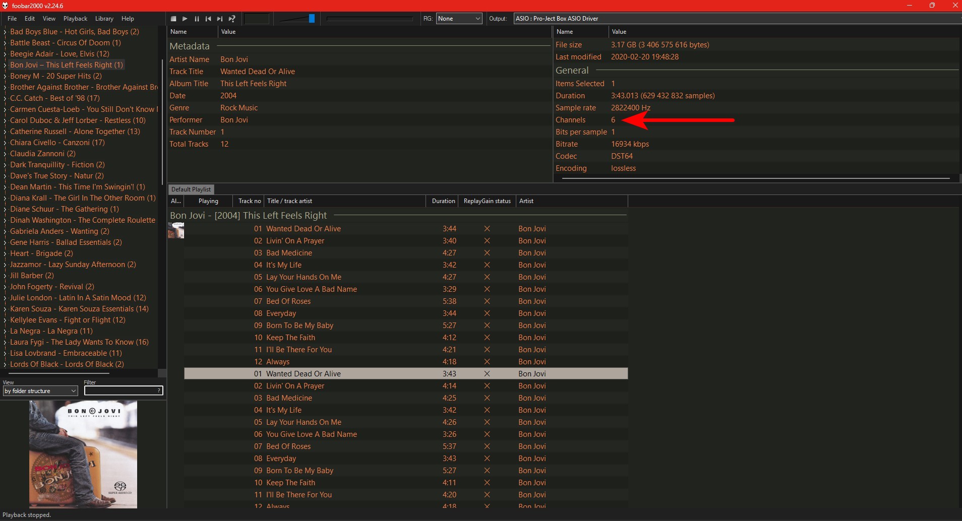Судя по скрину, это образ SACD. В настройках декодера SACD выбрать Preferable Area->Stereo. Возможно, после этого придётся пересканировать библиотеку, чтобы 6-канальные треки с SACD из неё пропали.