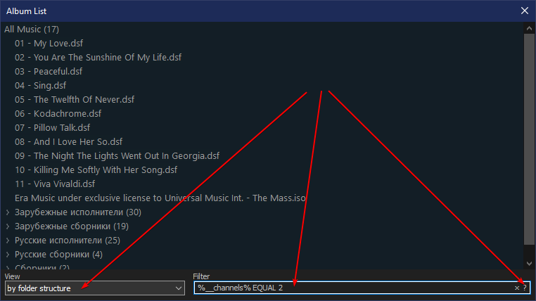 Вы также можете отфильтровать библиотеку по любому запросу. Правда он не сохраняется, после перезапуска плеера нужно вводить заново.
