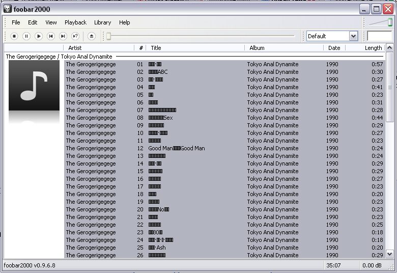 всем привет, подскажите как добавить в foobar2000 v.0.9.6.8. поддержку японских символов (иероглифов) в тегах. в системе японская кодировка поддерживается, на last.fm треки скробблятся корректно, но в самом плейлисте плеера вместо символов прямоугольнички.