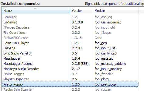 3) Компонент Pretty Popup (foo_prettypop) - всплывающая popup-панель (по умолчанию всплывает при свёрнутом foobar)