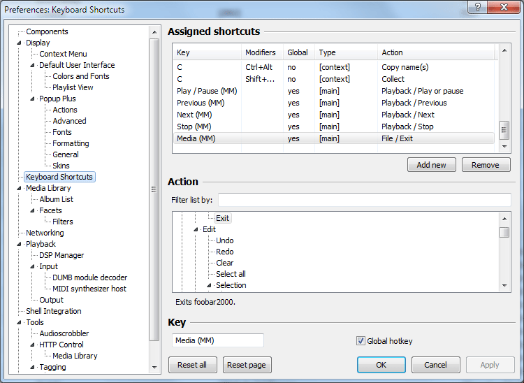 Такой прием (без принудительной фокусировки на нужном окне) далеко не во всех сборках работает. Как результат - при переходе в ELPlaylist, например, без щелчка по нему, PgUp, PgDn не скроллируют его экран, а мотают пачками альбомы, потому что перед этим, скажем, было активно окно Album list и фокус остался на нем. Тогда ситуацию приходится лечить AutoIt-овскими скриптами, чтобы принудительно фокусироваться на нужное окно и делать адресный Controlsend в него, а не Send кому попало.VEG:Можно сделать их глобальными, чтобы они перехватывались во всей ОС. Я себе так и сделал