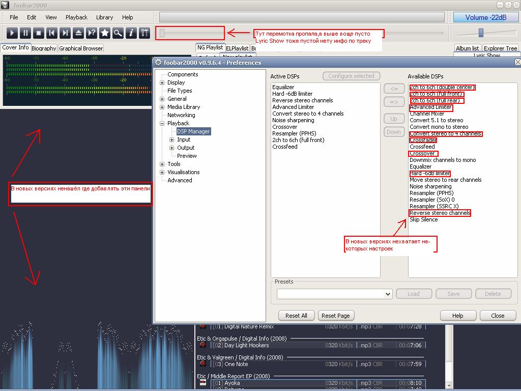 Попыток обновить небыло.днями ранее всё работало, следущим утром как всегда вкл комп запустил фообар клик по нужному мне треку э-радио, всё играет и показывает, слышу трек прикольный думаю надо глянуть кто исполняет а в сеекбаре скрипт эрор и полсунок неактивен чтобы трек мотать, то на одном треке есть ползунок то клик по другому пропадает а когда есть он то потянуть нечего непроисходит и опятьже встроке пусто. я в осадок чо за бредятина.. я вплейлист где треки лежат там ещё показывало когда э-радио стриим играл и со сменой трека и менялось имя исполнителя со временем и это глючить начало залипать на одном названии а трек уже другой играет. я перезапустил плейер, повторил всё норм. полез в эквалайзер или в кроссовер там дернул настройки, нажал окей херакш опять скрипт эрор. Я переустановил фообар часок максимум норм поработает и опять глючить. Потом вообще перестал распозновать что за трэк играет с э-радио. ГРРР.. я в бешенство. Привёл друга показал расказал ему, он хз пробуй винду поставить посвежей, я раз одну XP проинсталил, пробую что фообар делать буит. Нефига сначало работает всё опять через короткое времечко глюк, я другой XP ещё свежей залил SP3 и то сё внём.. И таже хрень с фообаром.. Дружбан говорит это он фообар виноват выкинь ставь винрар да ну я за фообар.Вот...