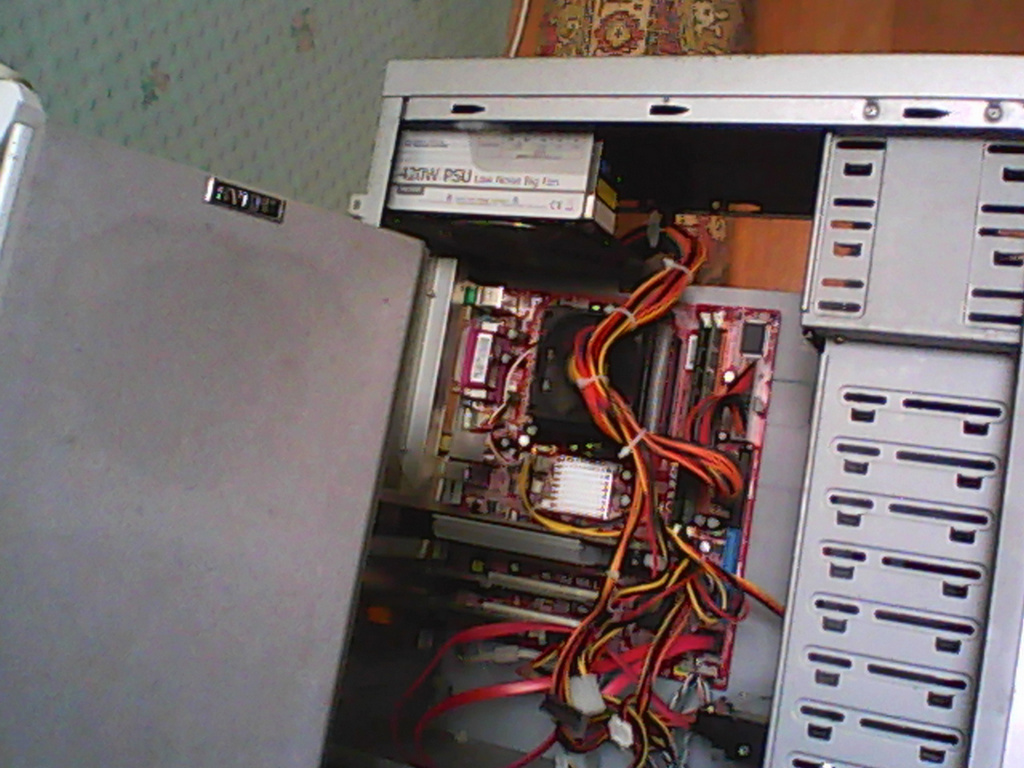 Корпус был перевернут и укорочен на отсек с дисками. Корзина с дисками переместилась на дно, к БП. БП тоже был доработан, оставлены шлейфы питания матери и проца, остальные обрезаны и собраны на клеммном терминале, к этому терминалу подключены два жестких, кулеры (4 шт.) и монитор, питавшийся от внешнего адаптера 12 в. Питание кулеров переключается, 5 или 12 вольт.