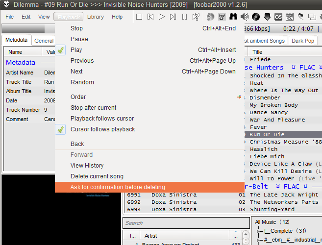 natrixx, cпасибо. А можно сделать так, чтобы не спрашивала подтверждение удаления?? а то привык в аимпе играть и музыку параллельно разбирать, тыкаешь удалить горячей клавитшей и удаляет, а тут удалить и спрашивает, да или нет..