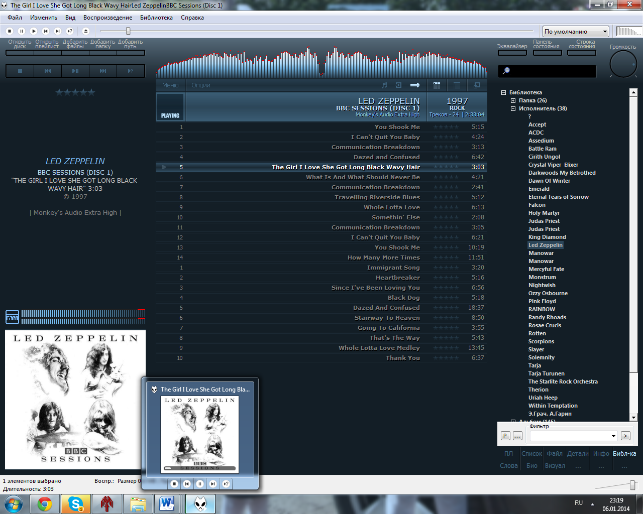 foobar2000 DarkOne v3.0 - всё было указано. Единственно добавляю - ос - стандартная лицензионная 7-ка.