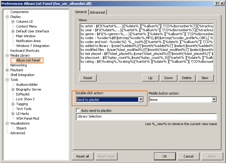 UPD: в Preferences - Columns UI нажал импорт и нашел нужный скин в папке сборки. А как вернуть все остальные настройки и т.п. с этой сборки? Например, раньше в библиотеке при нажатии на альбом он начинал проигрываться. А теперь он просто раскрывается и видно список треков (как будто нажал мышкой на "+" возле названия альбома).