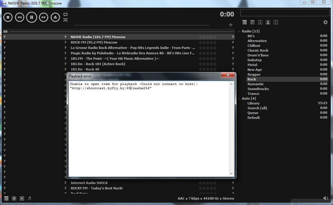 И еще вопрос про радио - возможно, какой-то плагин не настроен. Установил сборку с нуля. При воспроизведении выдаёт ошибку "Unable to open item for playback (Could not connect to host):