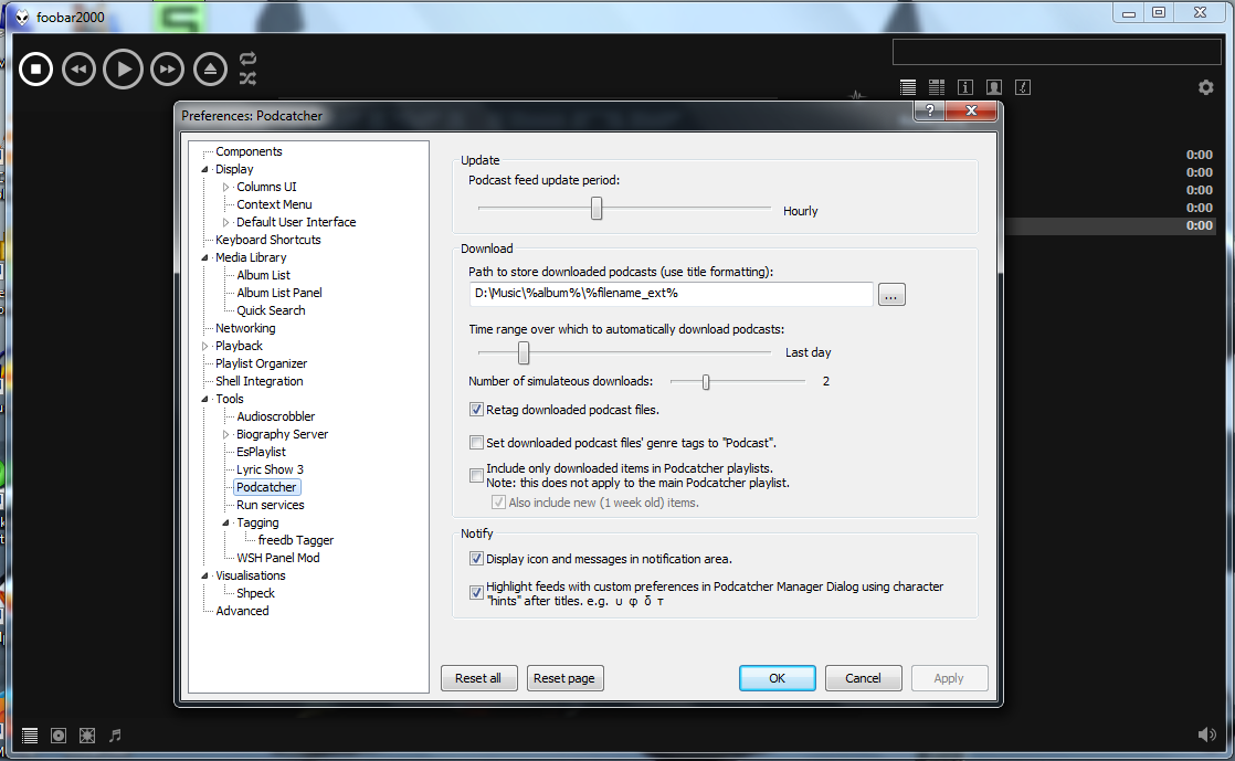 Настройки плагина для воспроизведения подкастов