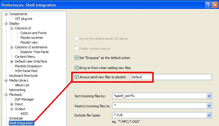 Из км проводника или из библиотеки, музыка засылается в текущий плейлист. Как сделать что бы она засылалась и проигрывалась в плейлисте "Default" или "Librarry"?