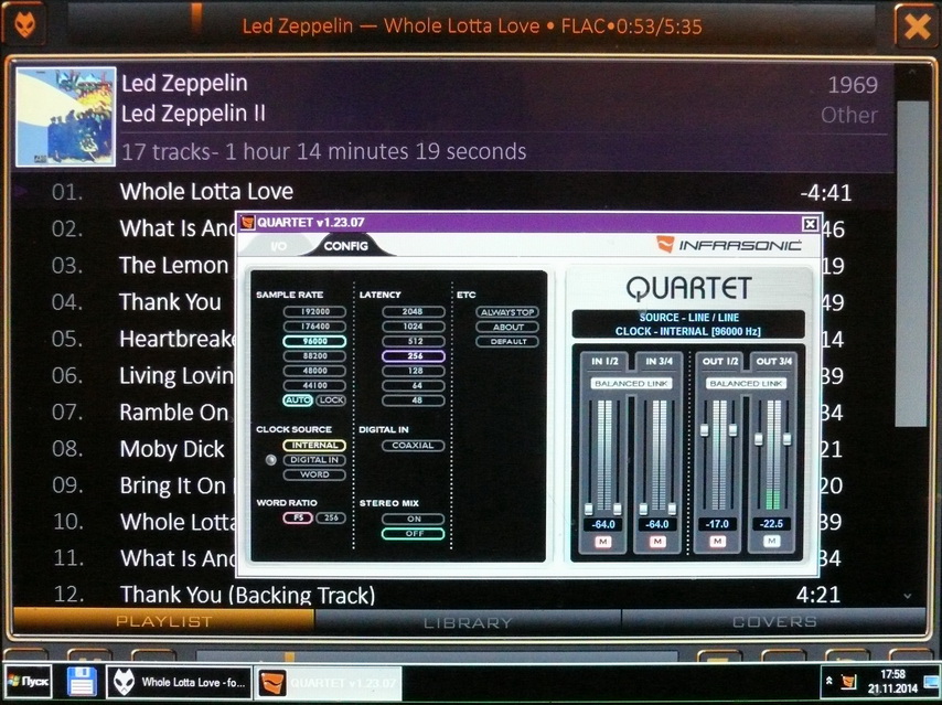 Слушаю по ASIO и под winXP и под win7. Возможность переключения (использования) каналов вывода на наушники и (или) усилитель, АВТОМАТИЧЕСКОЕ определение и переключение частоты дискретизации до 192/24. Если оно (ASIO) вот уже 5 лет нормально работает под любой win, то почему я не должен его использовать? Видимо зависит от степени кривизны написания родного для железки ASIO...vladj:Странно...почему все пытаются слушать именно по ASIO ?