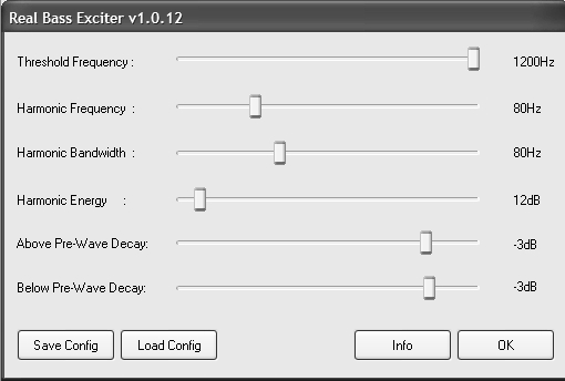Threshold Frequency лучше выставить на 1200 гц, звучит более чище, выставления значений ниже 800 гц - звучит более грязнее. Harmonic Frequency и Harmonic Bandwidth можно настроить как хотите. Нarmonic energy не выше 12 дб для динамиков Нarmonic energy не выше 20 дб для наушников Above Pre-Wave Decay и Below Pre-Wave Decay - не выставлять большие значения, иначе будут искажения на средних частотах, звук кардинально изменится.